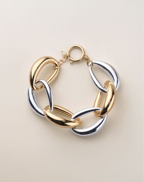 Double up on style with this chic two-tone link bracelet. A mix of goldtone and silvertone oval links gives your look a modern twist that’s both sleek and sophisticated.
