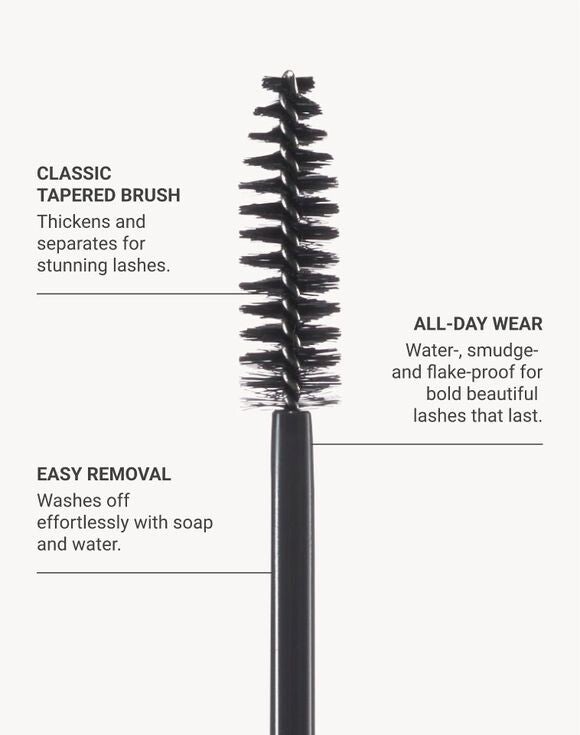 • Classic tapered brush thickens and separates for bold, beautiful lashes